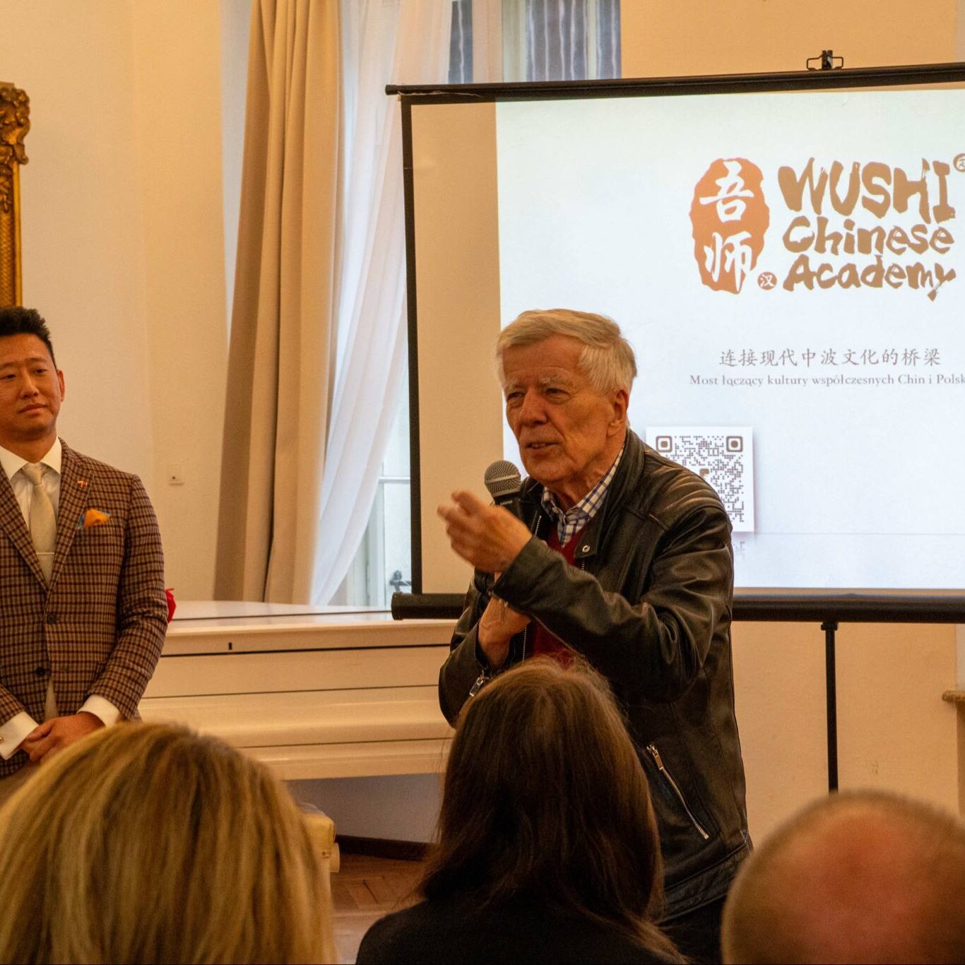 Założyciel szkoły, pan Tian, podzielił się historią powstania Akademii Języka Chińskiego Wushi oraz motywacjami, które go do tego skłoniły. W swoim wystąpieniu wyjaśnił również głębsze znaczenie nazwy „Wushi 吾师” –— które nie ogranicza się jedynie do dosłownego tłumaczenia „mój nauczyciel”, ale nawiązuje do bogatej symboliki zakorzenionej w chińskiej kulturze i piśmie, znanej każdemu Chińczykowi. To znaczenie niesie ze sobą ducha wielowiekowej tradycji Państwa Środka (Chin).📃💭
