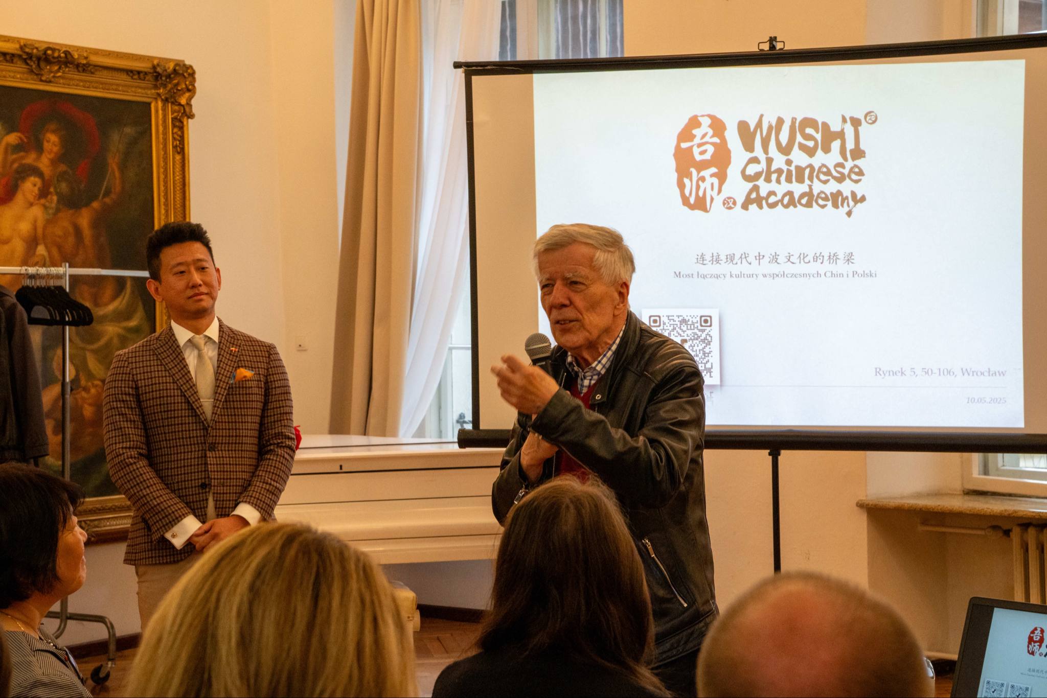 Założyciel szkoły, pan Tian, podzielił się historią powstania Akademii Języka Chińskiego Wushi oraz motywacjami, które go do tego skłoniły. W swoim wystąpieniu wyjaśnił również głębsze znaczenie nazwy „Wushi 吾师” –— które nie ogranicza się jedynie do dosłownego tłumaczenia „mój nauczyciel”, ale nawiązuje do bogatej symboliki zakorzenionej w chińskiej kulturze i piśmie, znanej każdemu Chińczykowi. To znaczenie niesie ze sobą ducha wielowiekowej tradycji Państwa Środka (Chin).📃💭